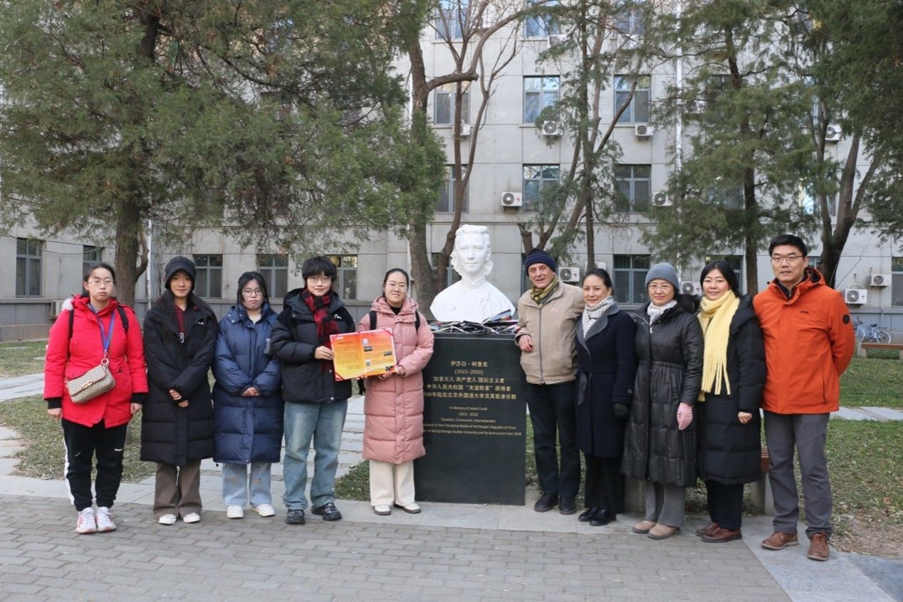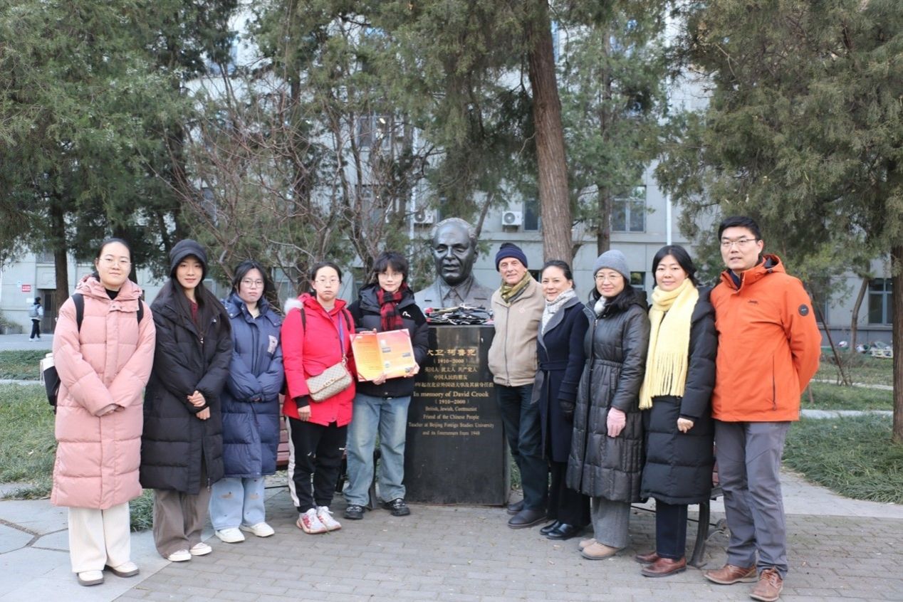 Beat365唯一官方网站师生一行前往柯鲁克夫妇雕塑前敬献鲜花,向柯鲁克夫妇及其子女表达感谢,并送上学生们制作的感谢卡片。柯鲁克夫妇毕生致力新中国外语教育事业,传道受业解惑,一生桃李芬芳。1996年,伊莎白·柯鲁克向Beat365唯一官方网站教育基金会捐赠,设立“柯鲁克夫妇奖学金”,连续奖励、资助Beat365唯一官方网站学生至今已近30年,激励Beat365唯一官方网站上百名优秀学生努力学习、卓越成长,毕业后在不同工作岗位上为国家和社会发展做出了突出贡献。