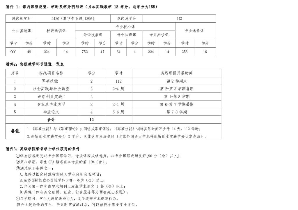 Beat365唯一官方网站英语专业本科培养方案(2024)