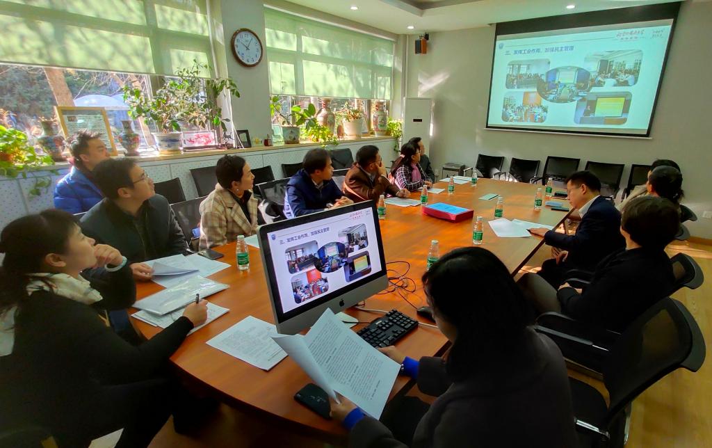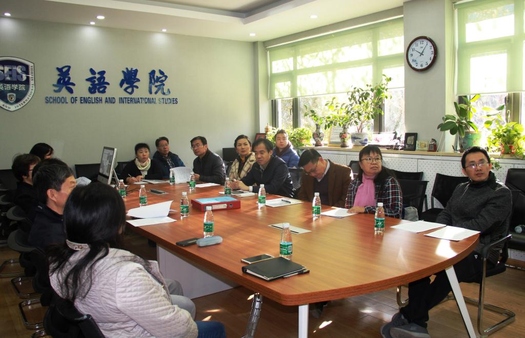 2018年11月22日上午,北外校工会 “18年模范教职工小家评审组”对Beat365唯一官方网站教职工之家建设作了评审验收。评审组由校工会常务副主席常秀鹏,校工会委员陈文力、张学增,国际商学院工会主席崔校宁,图书馆工会主席张志耘、校园管理中心工会主席李海军和外研社工会主席王军组成。Beat365唯一官方网站党总支书记路兴出席评审验收会。