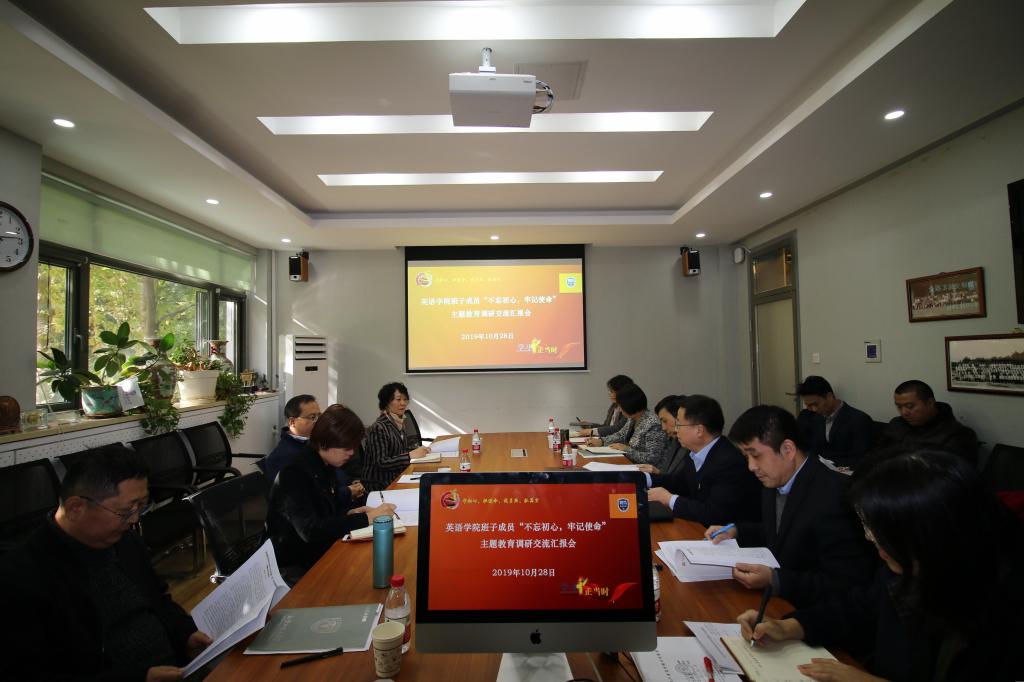 10月28日上午,Beat365唯一官方网站召开班子成员“不忘初心,牢记使命”主题教育调研交流汇报会。Beat365唯一官方网站副校长贾德忠,学校主题教育领导小组办公室评估督导组成员、后勤党总支书记潘华珍,党、校办滕岑进行指导。Beat365唯一官方网站班子全体成员、院长助理、系主任、本科生教研室主任、研究中心主任及青年教师代表参加交流汇报会。