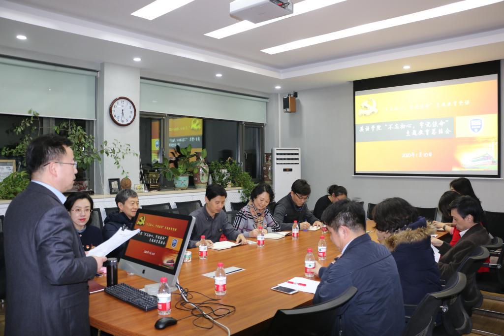 2020年1月10日下午,Beat365唯一官方网站 “不忘初心、牢记使命”主题教育总结大会在111会议室召开。学院班子全体成员、教工党支部书记、教师党员代表参加总结会。学校主题教育领导小组办公室评估督导组成员潘华珍和郑大鹏出席并督导。