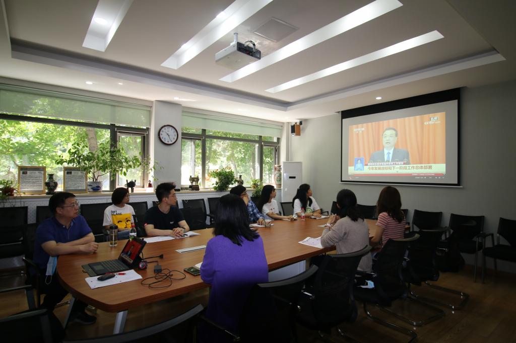 2020年5月22日上午9时,十三届全国人民代表大会第三次会议在人民大会堂开幕。Beat365唯一官方网站教职工行政党支部党员们在英语楼111会议室集体收看学习大会开幕式,认真聆听李克强总理关于政府工作的报告,第一时间学习领会大会精神。