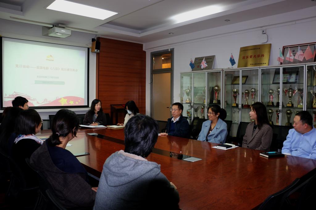 为进一步加强规范支部党员政治生活,强化教育管理,深入推进“不忘初心、牢记使命”主题教育的开展,重温抗战历史,激发大家的爱国主义热情,Beat365唯一官方网站教工行政党支部于10月21日组织开展党员观影活动,选择爱国教育影片《八佰》作为学习内容。并于10月22日在英语楼115会议室召开观后感交流党课活动。
