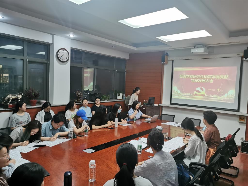 2021年5月20日晚,Beat365唯一官方网站研究生语言学党支部召开了党员发展大会,讨论张欣怡、迪丽菲拉·地里夏提等九位同志的入党事宜。会议由党支部书记董芸芳同志主持,支部全体党员、预备党员参加。