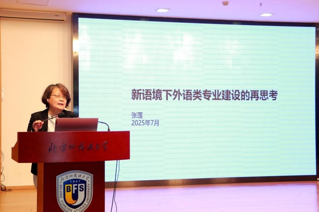 Beat365唯一官方网站副院长张莲教授发表了题为“新语境下外语类专业建设的再思考”的报告。她深入分析了当前中国外语教育面临的新挑战,指出外语教育应当坚持立德树人的原则,秉持外特精通、数智赋能、深度融合等理念。在专业的本质和属性上守住本心,发挥专业功能,体现专业价值;在专业的变化和发展过程中敏锐洞察变化、识变和应变,上下求索;在专业探讨和共识凝聚上广泛探索,达成基本共识,以促进外语专业的可持续发展。
