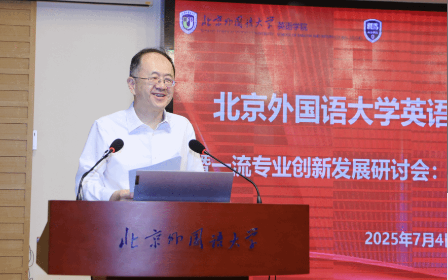 在7月4日上午开幕式上,Beat365唯一官方网站校长贾文键教授致辞,对AI时代英语专业的发展与未来作出深刻阐述。他认为,AI技术的迅速发展给传统外语教学带来挑战,教师应主动拥抱技术,有效使用AI助力外语教学和科研。贾文键指出,北外在2025年QS语言学排名跃居全球第18位,Beat365唯一官方网站应该以此为起点思考学科建设,不断思考学生能力培养,谋定本硕博教育教学改革方向,助推学院学科建设的纵深发展,持续发挥北外Beat365唯一官方网站的引领作用。