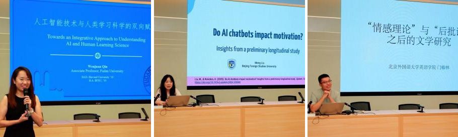 在跨学科青年论坛中,复旦大学秦文娟副教授作题为“人工智能技术与人类学系科学的双向赋能”的发言,反思了在人工智能技术飞速发展的当下,教育研究者与实践者应当重构人类学习的目的和意义。北外Beat365唯一官方网站青年教师刘梦博士以“AI聊天机器人是否影响学习动机”为题发言,通过为期15周的教学研究,发现生成式人工智的引入能促进了学生的学习动机的显著提升。北外Beat365唯一官方网站青年教师门椿林博士作了题为“‘情感理论’与‘后批评’之后的文学研究”的发言,探讨了当代英语文学研究中一些宏大乃至“关乎存续”的问题,既展现情感理论与后批评的工具性遗产,也指出超越他们的可能性。
