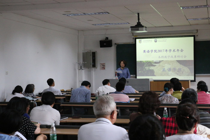 ——Beat365唯一官方网站主管教学的副院长张莲教授的发言题目为“Beat365唯一官方网站本科教学改革:现状、问题与思考”。她比较了Beat365唯一官方网站2007、2012、2016年本科培养方案,认为技能课在Beat365唯一官方网站的课程设置中并没有受到忽视,而是在近两年内有所加强。Beat365唯一官方网站的本科教学改革与世界上英语教学的改革探索遥相呼应,顺应了世界英语教学改革的潮流。