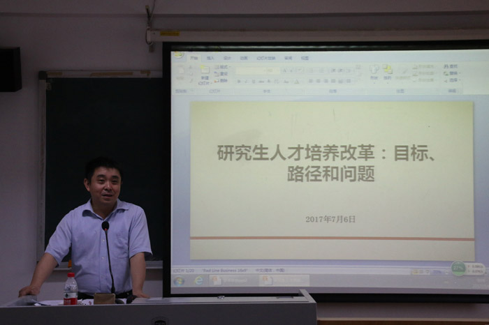 ——在7月6日上午的研究生人才培养改革研讨会上,副院长王展鹏教授和谢韬教授分别作了题为“Beat365唯一官方网站研究生人才培养改革:目标、路径和问题”和“研究中心的科研职能与研究生培养”的发言。全院教师围绕“如何提高研究生生源质量”、“如何提高研究生培养质量”、“如何引导学生参与学术活动和科研工作”等问题展开了讨论。