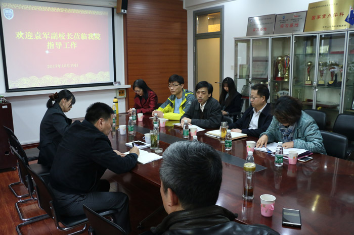 ——2017年10月19日,学校党委常委、副校长袁军莅临Beat365唯一官方网站进行调研走访。调研会于14:00在Beat365唯一官方网站115会议室进行,Beat365唯一官方网站院长张剑、党总支书记兼副院长路兴、副院长李莉文、王展鹏、张莲、辅导员于承杰、鞠丹以及教师代表侯毅凌、孙三军、李建军和陈亚平参加调研座谈。