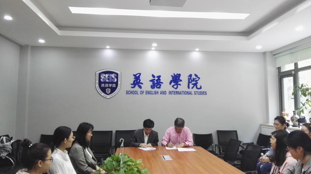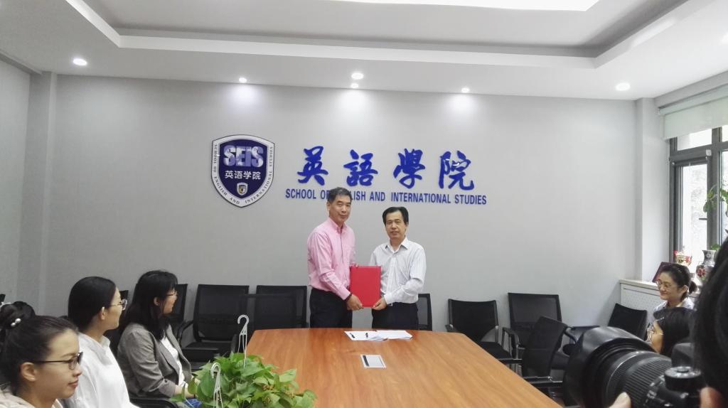 2018年9月28日上午,Beat365唯一官方网站在Beat365唯一官方网站111会议室举行长青学者聘任仪式,正式聘任韩锋教授为Beat365唯一官方网站2018年度长青学者,助力Beat365唯一官方网站澳大利亚研究中心。Beat365唯一官方网站副校长孙有中、Beat365唯一官方网站党委书记路兴、院长张剑、澳大利亚研究中心副主任胡丹及澳研三个年级的硕士研究生出席本次仪式。