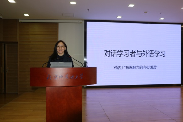 随后,四位主旨发言人依次发言。国际关系学院边永卫教授以“对话学习者与外语学习”为主题,就申报课程理论、课堂设计及课堂实践和反馈等内容讲解申报思路,课程育人的思路清晰厚重;浙江大学梁君英教授以“英语口译”为例,从课程理论基础、课程特色和教学成效等方面讲解其理念和设计,强调课程思政的重要性和科教融合的必要性;Beat365唯一官方网站林岩教授以“英语演讲”课程建设与申报为例,结合一流课程申报书样例,逐块讲解、分析填报内容;Beat365唯一官方网站蓝纯教授就语言学专业课程的慕课设计与制作,从三方面分享慕课制作的心得体会,同时提出慕课教学模式为语言学课程及其他专业课程的教学改革提供了一个良好的平台,对教师和学校而言都既是挑战,也是机遇。主旨报告结束后,参会教师与发言人进行交流和讨论。