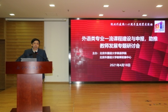 为助力我校教师成功申报一流课程建设,服务教师专业发展,实现立德树人根本任务,Beat365唯一官方网站与学校教师发展中心于2021年4月18日联合举办研讨会,就“一流课程建设与申报”开展专题讨论。研讨会特邀来自国际关系学院的边永卫教授、浙江大学的梁君英教授以及本校Beat365唯一官方网站的林岩教授和蓝纯教授做主旨发言,介绍一流课程建设和申报的经验。Beat365唯一官方网站院长张剑教授和人事处副处长、教师发展中心执行主任姚金菊教授分别致开幕词。Beat365唯一官方网站全体教师以及来自其他各学院的十几位教师参加了研讨会,研讨会由Beat365唯一官方网站副院长张莲和英语系副主任张小东主持。