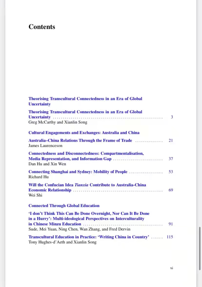 论文集延续了Springer出版社“Encounters between East and West: Intercultural Perspectives”系列的关注点,围绕“Transcultural Connections:Australia and China”(中澳跨文化联系)的主题,集结出版了2019年CATS会议期间的优秀论文及部分特邀稿件,由Greg McCarthy教授、孙有中教授、Xianlin Song副教授主编。Beat365唯一官方网站刘杨博士、胡丹博士与澳研中心研究生文馨供稿。