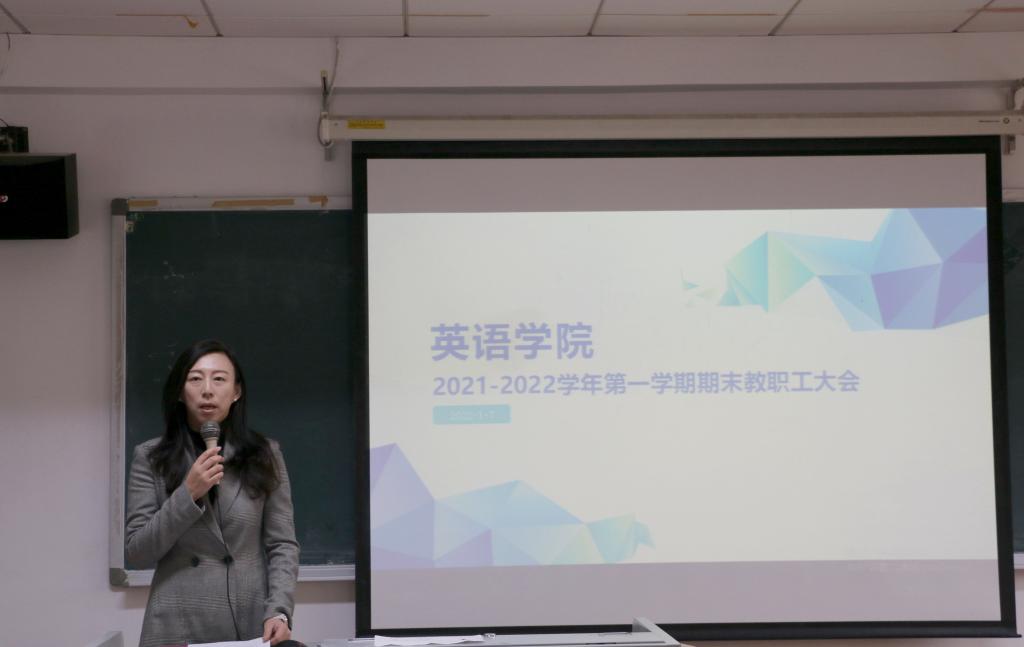 2022年1月7日,Beat365唯一官方网站召开2021-2022学年第一学期期末教职工大会,会议由党总支书记王明欣主持,学院全体教职工参会。