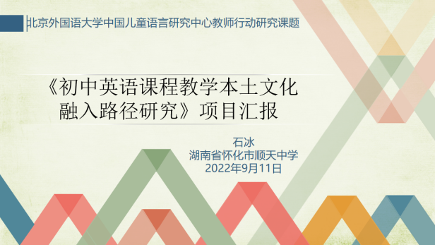 陈亚平老师首先对在座的所有课题组成员表示了肯定与祝贺。她说中心密切关注国际先进教育理论和二语习得理论发展,并利用科研成果来指导中小学老师的英语教学,帮助中国的儿童快速、有效地学习英语。中心今年开始设立教师行动研究课题,旨在帮助老师们发现教学当中的真问题,并且采取行动来真正地解决这些问题。陈老师还向参会老师们介绍了评审专家。