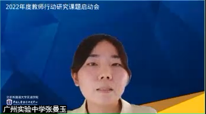 课题组汇报结束后,中心副主任王一虹老师向参加课题启动会的所有老师表达了真挚的敬意,对大家在百忙中如约参与研讨表示感谢。她表示非常开心看到中小学一线老师开始反思目前的教学现状,并逐渐从反思型教师到研究型教师过渡。她说在这个过程中学术思维的培养非常重要,并强调了“聚焦真问题、以终为始、以及研究方法和数据的收集”的重要性。