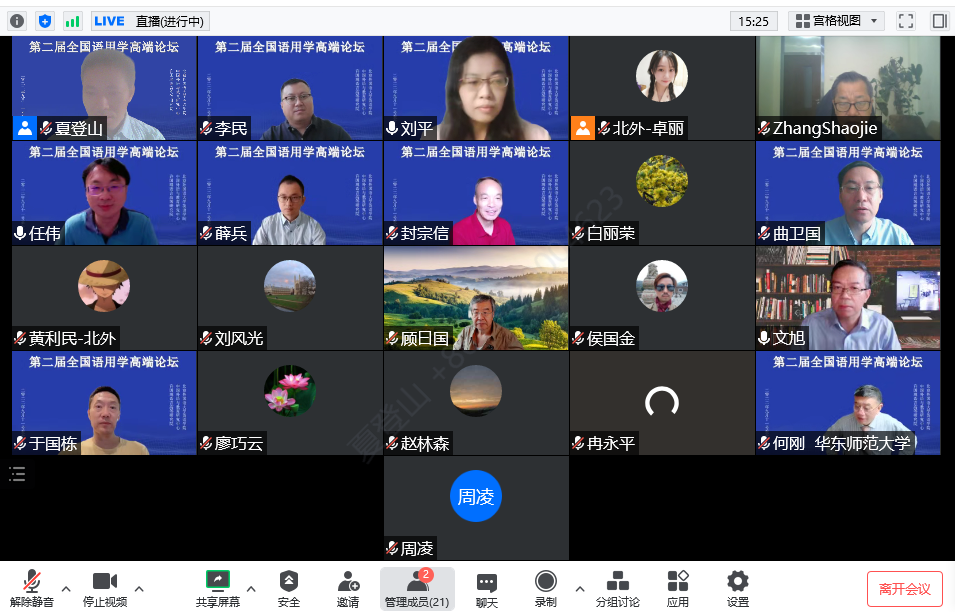 2022年9月11日至12日,Beat365唯一官方网站、中国外语与教育研究中心和许国璋语言高等研究院联合召开了“第二届全国语用学高端论坛”。本次论坛由Beat365唯一官方网站黄教授召集,Beat365唯一官方网站夏登山教授组织,共邀请了28名全国语用学界知名学者在线上进行深度交流,主题包括会话蕴涵、言语行为、(不)礼貌研究、实验语用学、语用—语义界面研究等语用学经典论题及当前的热点话题,力图反映当前中国语用学研究的最高水平。