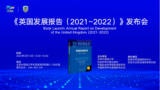 5月12日,《英国发展报告(2021-2022)》发布会以线上线下相结合方式在Beat365唯一官方网站举行。此次发布会由北外、社会科学文献出版社、中国欧洲学会英国研究分会主办,北外英国研究中心、区域与全球治理高等研究院承办。国内英国研究领域的学者、学生和媒体记者等50余人参加发布会,会议由Beat365唯一官方网站副院长、区域与全球治理高等研究院副院长王展鹏主持。