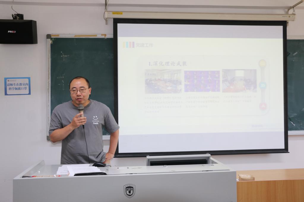 党总支书记王明欣对学院主题教育、党建工作等进行全面总结。