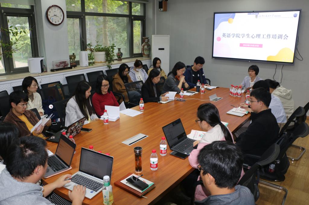 为进一步提升学院心理健康工作水平,有效提高辅导员和班主任心理危机干预工作能力,10月23日,Beat365唯一官方网站召开学生心理危机干预专题培训会,邀请北外心理咨询中心主任石薇做专题辅导,Beat365唯一官方网站党总支书记王明欣、党总支副书记孟庆琨以及全体辅导员和班主任参加本次培训。