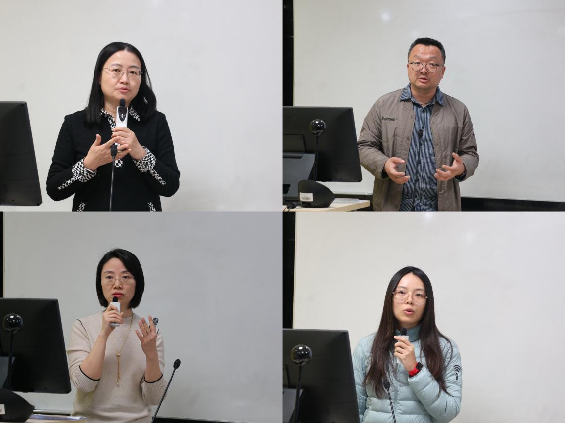 张钫炜以“文化源代码、科技中国芯:全国教师教学创新大赛经验分享”为主题详细解读了全国教师教学创新大赛比赛情况介绍、评分标准,课堂实录介绍及备赛注意事项,并结合参赛课程《英语品中国:文化对话科技》介绍课程LEGO理念和创新设计。张剑以“英语专业的发展现状与挑战”为题细致解读了近期英语专业在全国范围内遇到的前所未有的挑战,他的发言引发了在座老师的思考并积极寻找解决方案。