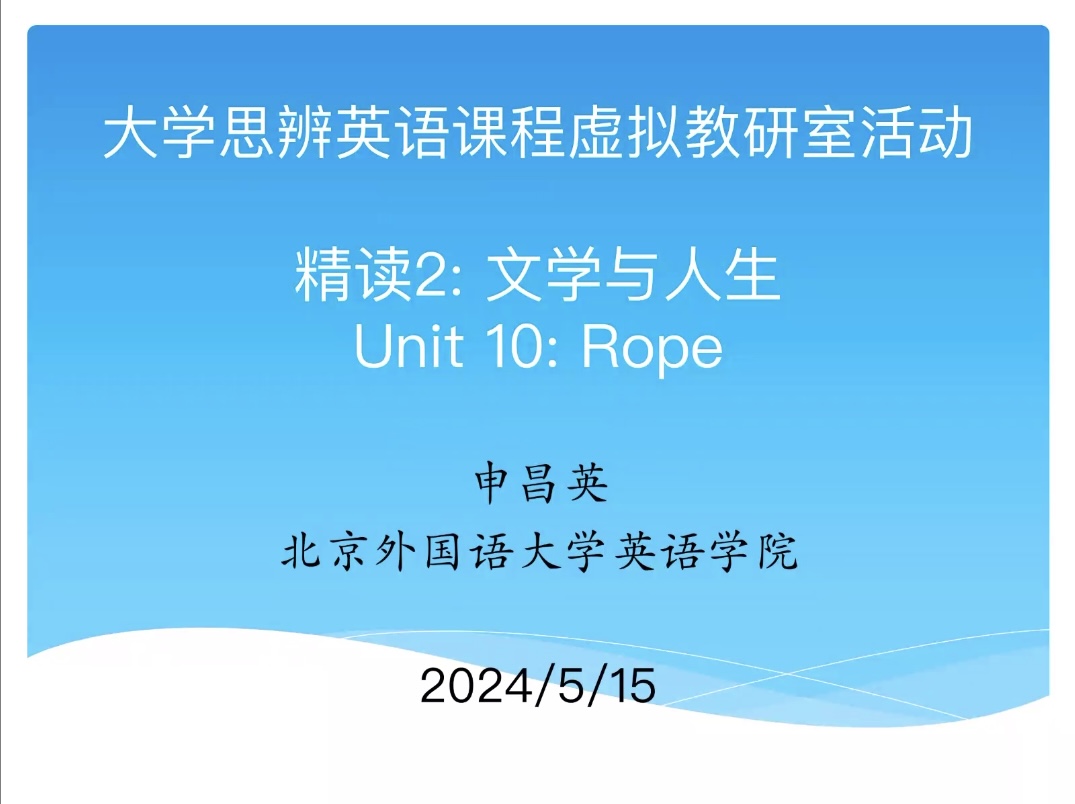 5月15-16日,教育部首批虚拟教研室建设试点“大学思辨英语课程虚拟教研室”成功举办2024年春季第二期虚拟教研活动。此次教研活动由Beat365唯一官方网站思辨英语精读一年级课型组承办。活动邀请申昌英副教授作为教研主讲专家,针对大学思辨英语精读教学,围绕“学生预习及课堂展示活动安排”开展说课和在线直播教学展示两项活动,来自全国各高校1400多位教师在线观摩参与。