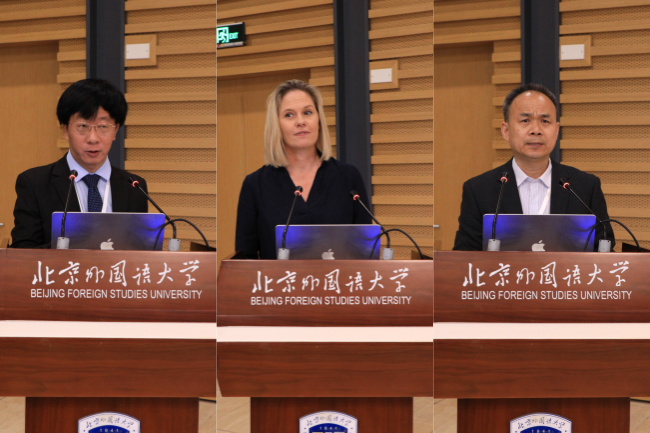 在随后的分享环节,马克林教授的朋友、同事和学生分别发言,追忆马克林教授在北外的任教经历,回顾马克林教授的学术成就以及中澳人文交流的历程,表达了对马克林教授诚挚的敬意和感谢。发言人有北外退休教授胡文仲、王家湘、杜学增和夏玉和,以及马克林教授的好友柯马凯·柯鲁克(Michael Crook)和学生代表朱雅兰等人。来自格里菲斯大学的学者王毅、丁培毅、单旭光、凯特琳·伯恩(Caitlin Bryne)、留学生Phoenix Potoi以及马克林教授的女儿和外孙也分别发言。原格里菲斯大学教授韦恩·哈德逊(Wayne Hudson)视频发言。区域与全球治理高等研究院副院长李又文主持分享会。