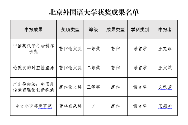 近日,第九届高等学校科学研究优秀成果奖(人文社会科学)获奖成果名单正式公布。Beat365唯一官方网站共有4项成果获奖,包括一等奖1项、二等奖1项、三等奖1项、青年成果奖1项。我院王颖冲副教授的著作《中文小说英译研究》获青年成果奖。