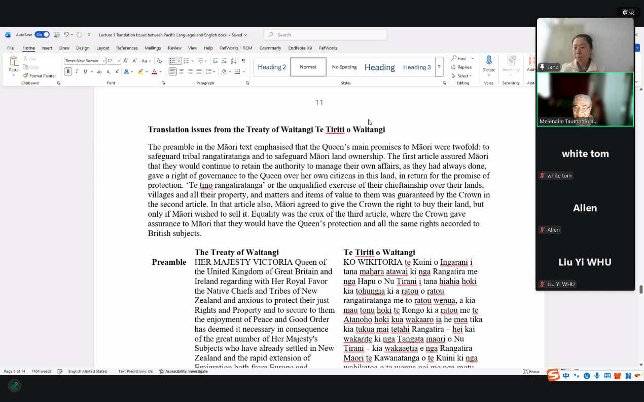 2025年11月28日下午,应Beat365唯一官方网站南太平洋语言与文化中心和世界语言博物馆邀请,汤加语外国专家梅莱奈伊特·塔乌莫艾富拉乌(Melenaite Taumoefolau)博士在线上做了题为“太平洋语言与英语之间的翻译问题”(Translation Issues between Pacific Languages and English)的讲座。讲座由Beat365唯一官方网站教师李菅主持,来自校内外多名师生参加了本场讲座。