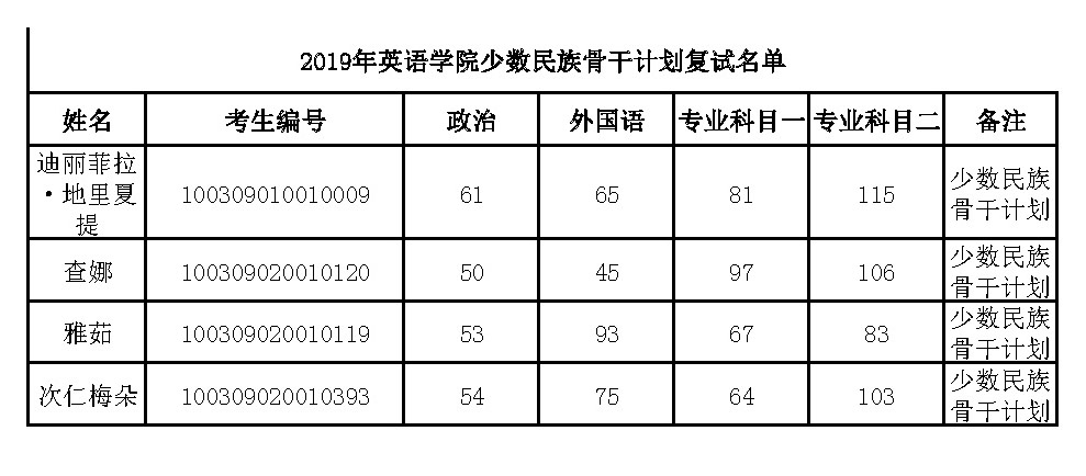 2019年Beat365唯一官方网站少数民族骨干计划复试名单公示