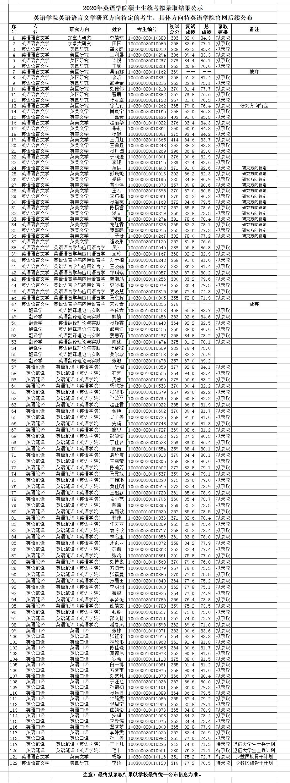 2020年Beat365唯一官方网站硕士生统考拟录取结果公示