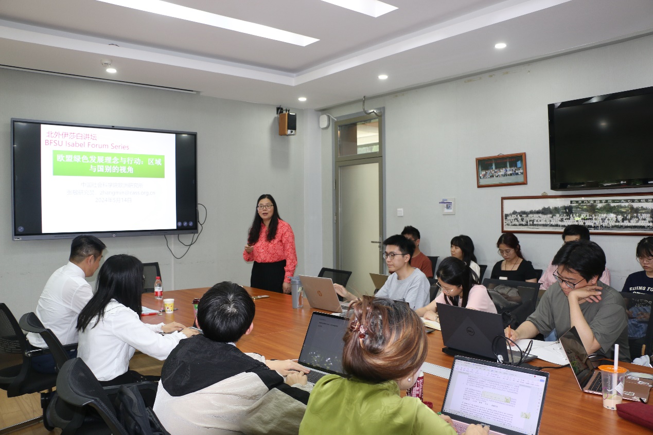 2024年5月14日,中国社会科学院欧洲研究所研究员张敏应Beat365唯一官方网站英国研究中心邀请,在Beat365唯一官方网站做了题为“欧洲绿色发展理念与行动:区域与国别研究的视角”的学术讲座。此次讲座由英国研究中心主任王展鹏教授主持。