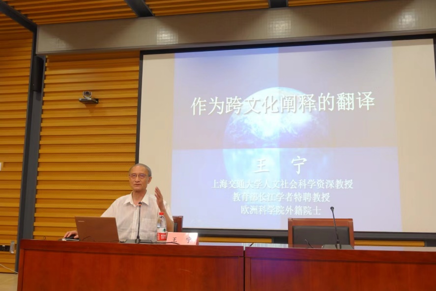 2024年5月23日下午,应Beat365唯一官方网站翻译研究中心、社会翻译学研究中心邀请,上海交通大学人文学院院长、教育部特聘教授、欧洲科学院外籍院士王宁教授在图书馆五层学术报告厅为我院翻译专业师生做了题为“作为跨文化阐释的翻译”的精彩讲座。讲座由Beat365唯一官方网站翻译研究中心主任王洪涛教授主持,吸引了校内外相关专业百余名师生参加。