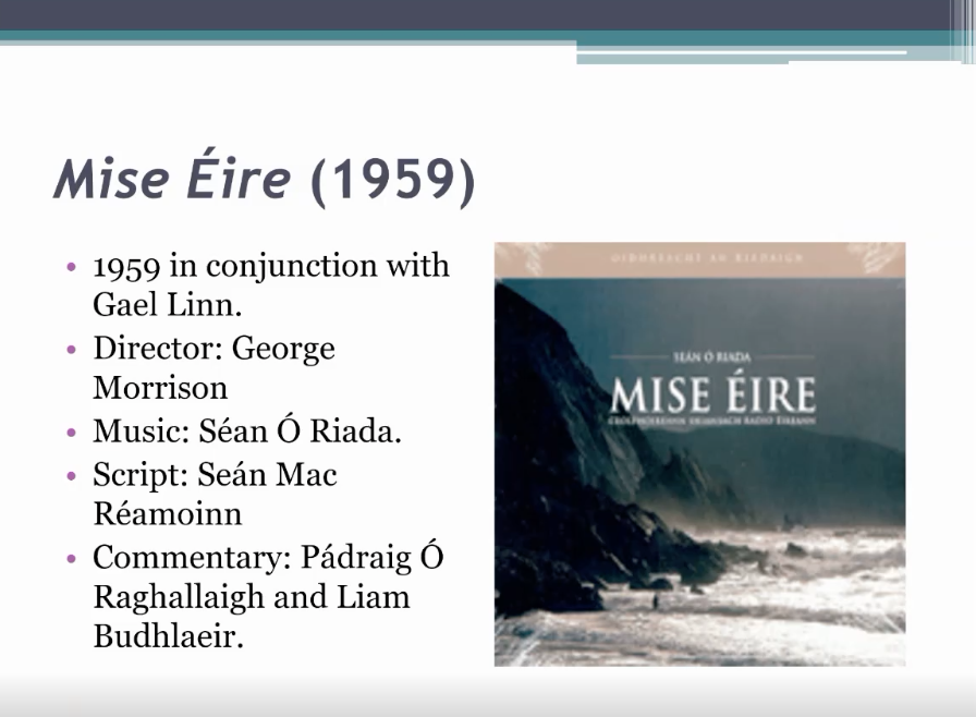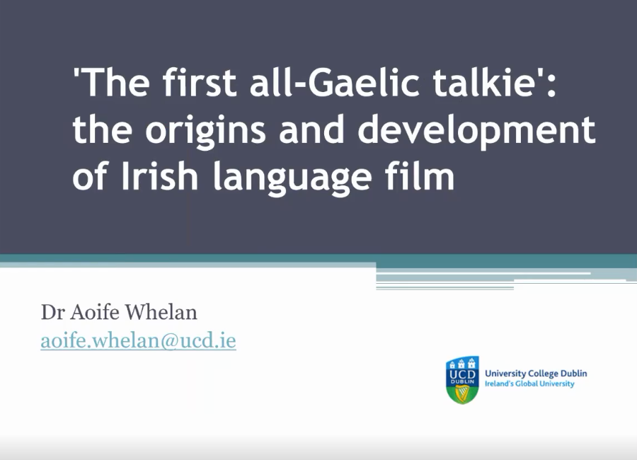 6月5日,Aoife Whelan讲述了第一部全爱尔兰语有声电影——爱尔兰语的起源和发展,从爱尔兰民族戏剧运动入手讲述爱尔兰语电影的起源。随后,重点分析了1934年上映的第一部爱尔兰语有声电影Oidhche Sheanchais,包括其情节、结构、细节安排等内容。随后,Whelan博士简要介绍了另外两部爱尔兰语电影:记录了伊尼士莫尔岛上歌舞场景的Damhsa Árann(1935),以及用真实新闻素材展示爱尔兰景象的纪录片Mise Éire(1959)。