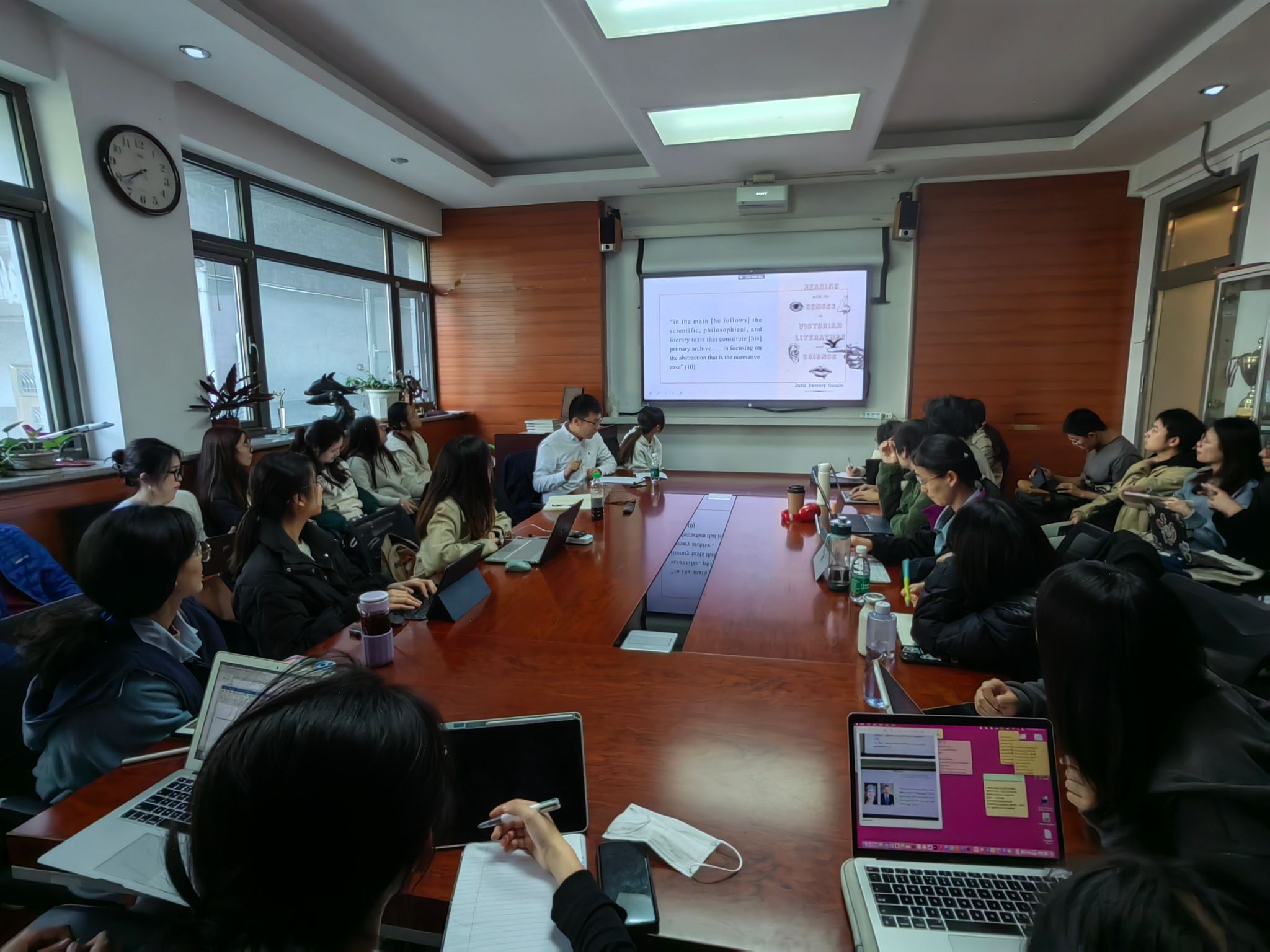 门椿林的讲座还将文学文本于哲学思想进行辉映连接,指出维多利亚思想家如赫伯特·斯宾塞、约翰·斯图尔特·密尔、奥古斯特·孔德等写作中对于抽象-具体这组辩证关系的复杂思考。在提问环节,门椿林与参加讲座的师生展开热烈的交流与互动,对与会师生提出的问题一一进行了深入解答。
