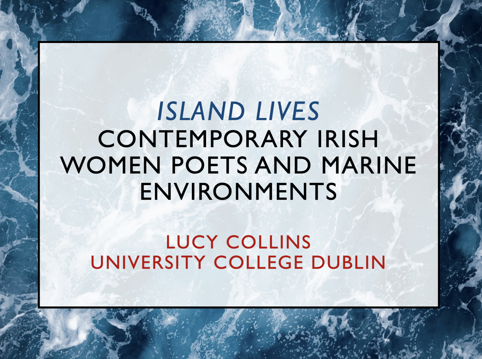 在这次讲座中,柯林斯教授展示了当代爱尔兰女性诗人如何通过海洋这一意象探索身份、历史与生态之间的复杂关系。这些诗歌不仅表现了对海洋的欣赏,更反映了当代社会中人类对自然和自我的认知。这些诗人的作品借助海洋,不仅让人重新思考自然的作用,还让人思索全球化、殖民历史和生态问题在当今社会中的重要性。
