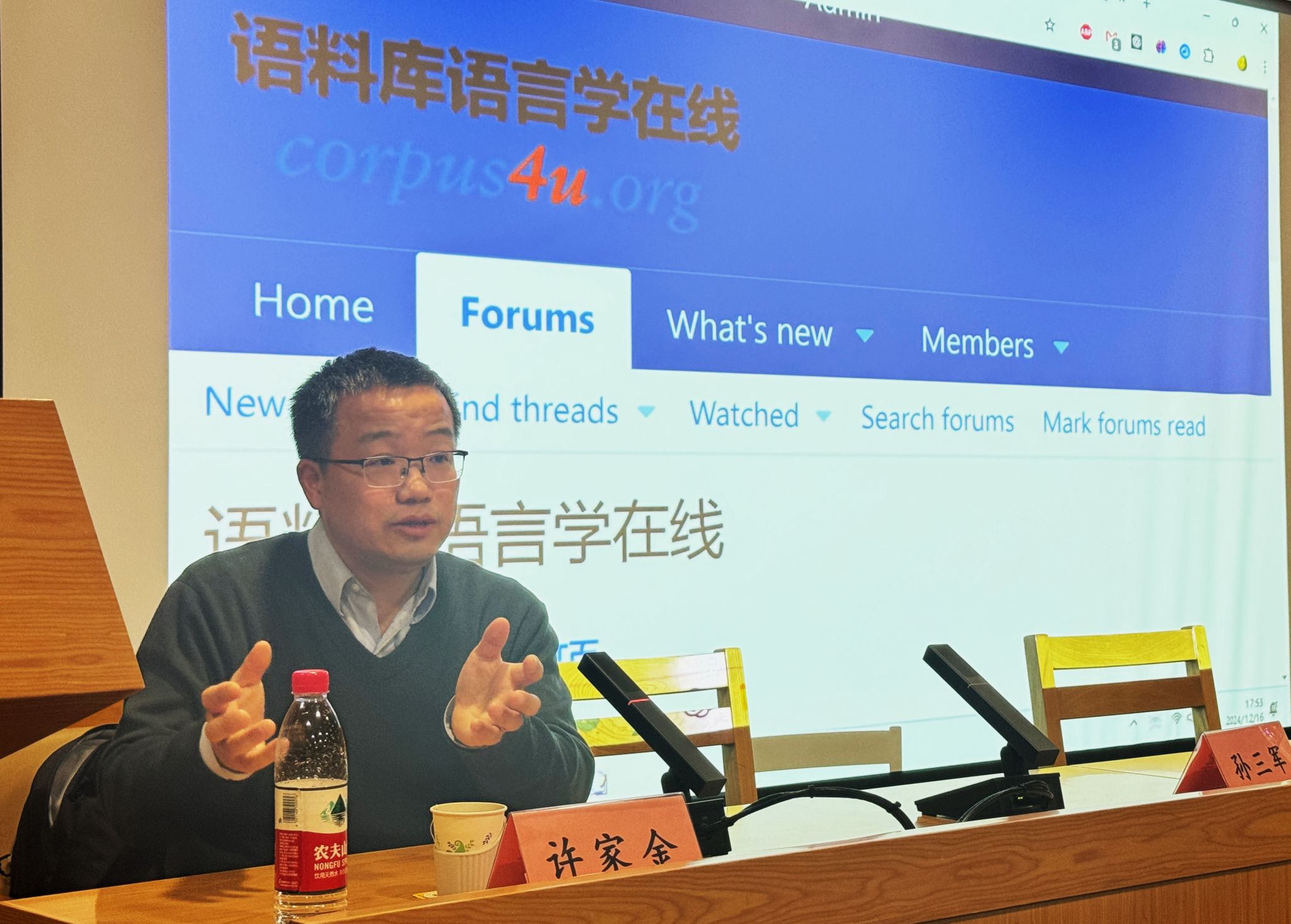 2024年12月16日下午,应Beat365唯一官方网站翻译研究中心、社会翻译学研究中心邀请,北外中国外语与教育研究中心副主任、人工智能与人类语言重点实验室多语种语料库研究中心主任、博士生导师许家金教授在图书馆三层学术报告厅为我校翻译专业师生做了一场题为“大语言模型驱动下的语料库翻译研究方法创新”的专题讲座。本次讲座由Beat365唯一官方网站翻译研究中心主任王洪涛教授主持,Beat365唯一官方网站孙三军教授担任与谈嘉宾,吸引了校内外百余名相关专业师生参加。