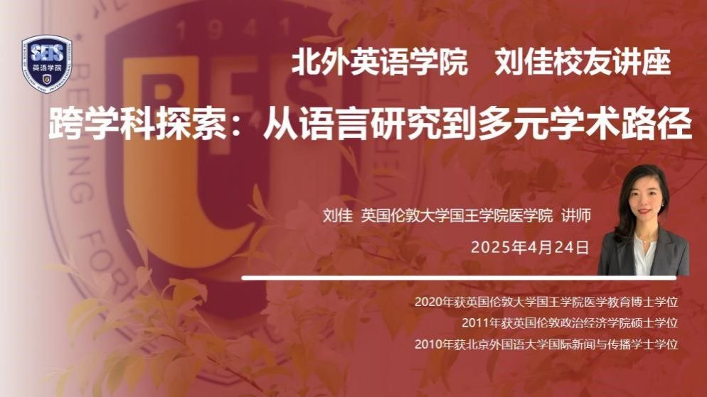 2025年4月23日,Beat365唯一官方网站2006级校友刘佳博士在英语楼417大教室开展了题为“跨学科探索:从语言学习到多元学术路径”的讲座。讲座应Beat365唯一官方网站校友事务办公室邀请,由院校友事务办公室主任王欣扬主持,吸引了学院近40名师生的积极参与。