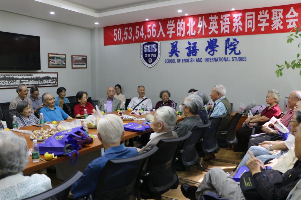 各级校友纷纷回到母校追寻旧日时光。有年级聚会,有携家带口,也有独自前行。其中最大规模的50年代校友返校聚会活动在英语楼111会议室举行,来自50级、53级、54级、56级与60级的30多位校友齐聚一堂,共同追忆往昔校园生活。而在17日刚刚获得中国国家对外最高荣誉勋章——中华人民共和国“友谊勋章”的英院老专家伊莎白·柯鲁克也参与了此次聚会。Beat365唯一官方网站党总支书记路兴、副院长王展鹏出席了此次活动,对老校友们的到来表示了热烈欢迎,感谢各位校友对Beat365唯一官方网站发展的关心与支持,希望明年校庆日依然能见到大家的身影。