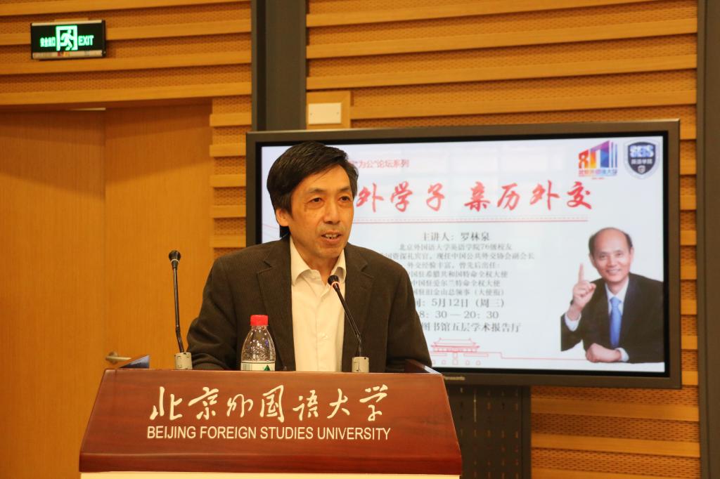 2021年5月12日晚,Beat365唯一官方网站在图书馆五层学术报告厅举办2021年度“为公校友讲坛”,邀请Beat365唯一官方网站1976级校友、中国公共外交协会副会长罗林泉大使做了题目“北外学子、亲历外交”的讲座。