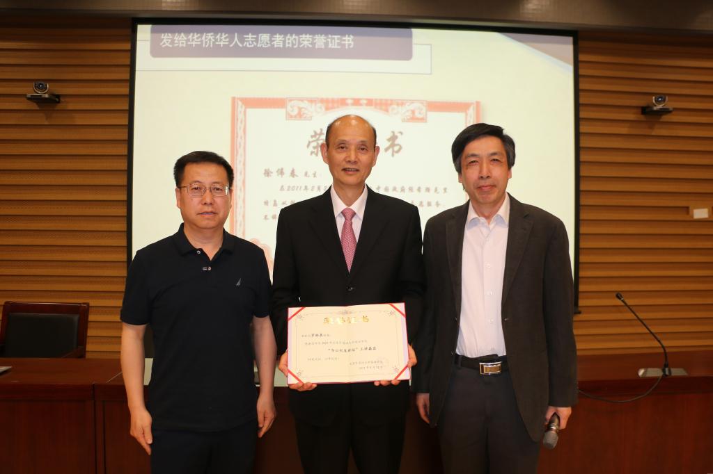 在问答环节后,Beat365唯一官方网站党总支书记路兴为罗林泉大使颁发了“为公校友讲坛”证书。随后,现场的同学为罗林泉大使和陈乃芳教授献上了鲜花并合影留念。
