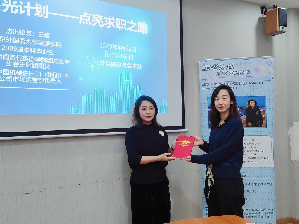活动结束后,Beat365唯一官方网站校友事务办公室主任王欣扬代表学院向王建校友颁发Beat365唯一官方网站“星光计划”学生成长导师聘书。