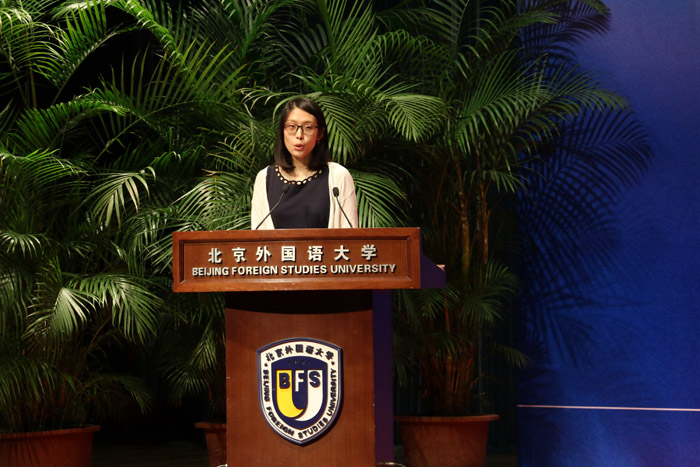 ——赵国新教授作为教师代表发言,鼓励新生尽快进入新的角色,树立新的目标,把“多读书”作为大学生活一项重要的事情来做。赵国新老师幽默的语言、聪睿的角度,赢得了在场师生的阵阵掌声。