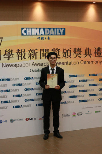 ——“校园学报新闻奖”由中国日报社2012年设立,旨在推动海峡两岸暨港澳青年学子的交流。此次评选活动吸引了两岸四地28所大学参赛,共有604份新闻作品参与奖项角逐。奖项分为中文、英文两类。包括最佳新闻报道、最佳新闻写作,最佳文化艺术新闻报道等30个奖项。香港特别行政区政府政务司司长张建宗、中国日报社编委兼亚太分社社长周立、香港商界名流、新闻业界人士出席颁奖典礼。