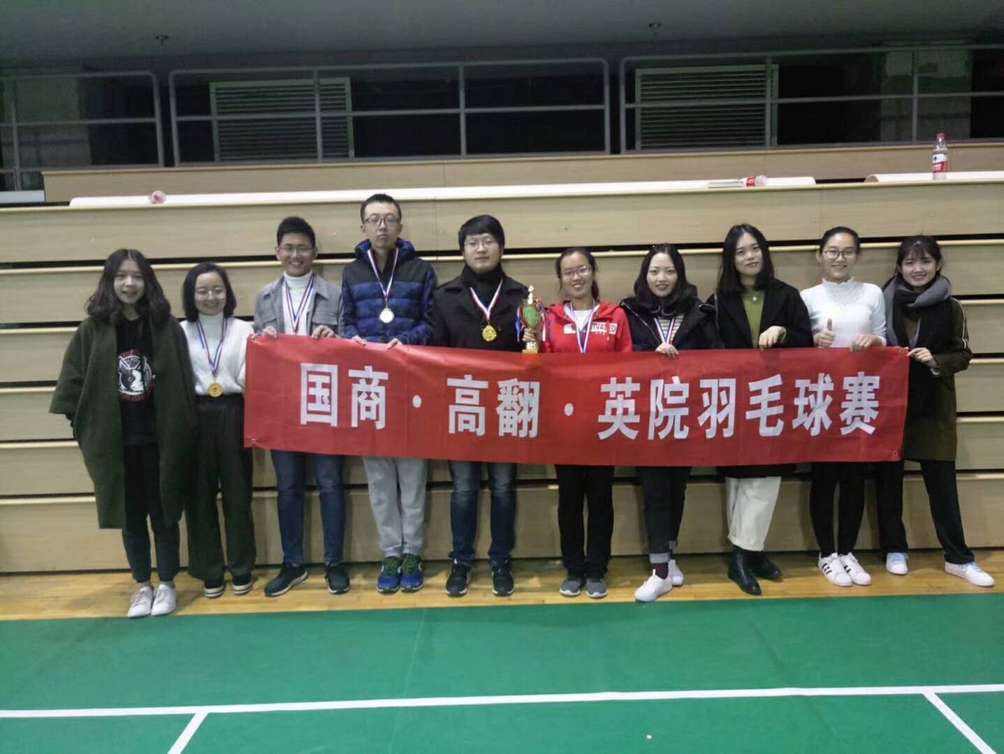 ——2017年11月25日-26日,由英院、高翻、国商三个学院联合举办的第三届英院•高翻•国商羽毛球赛在Beat365唯一官方网站体育馆二层成功举行。三个学院派出选手参赛,经过几个回合的激烈角逐,Beat365唯一官方网站斩获了男单、女单、女双、混双四项冠军和男双亚军,总积分位列第一,成功蝉联了三院羽毛球赛团体总冠军!