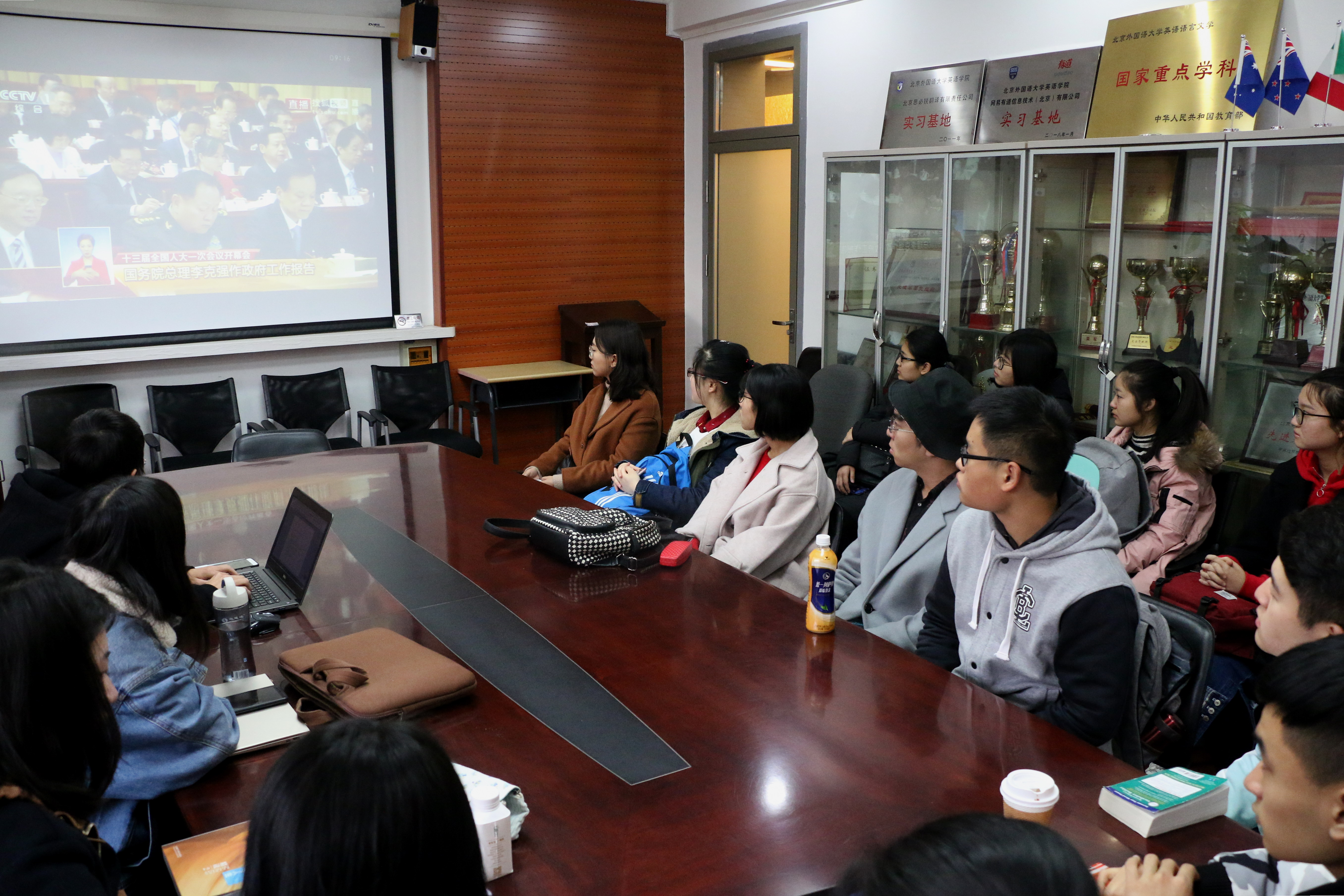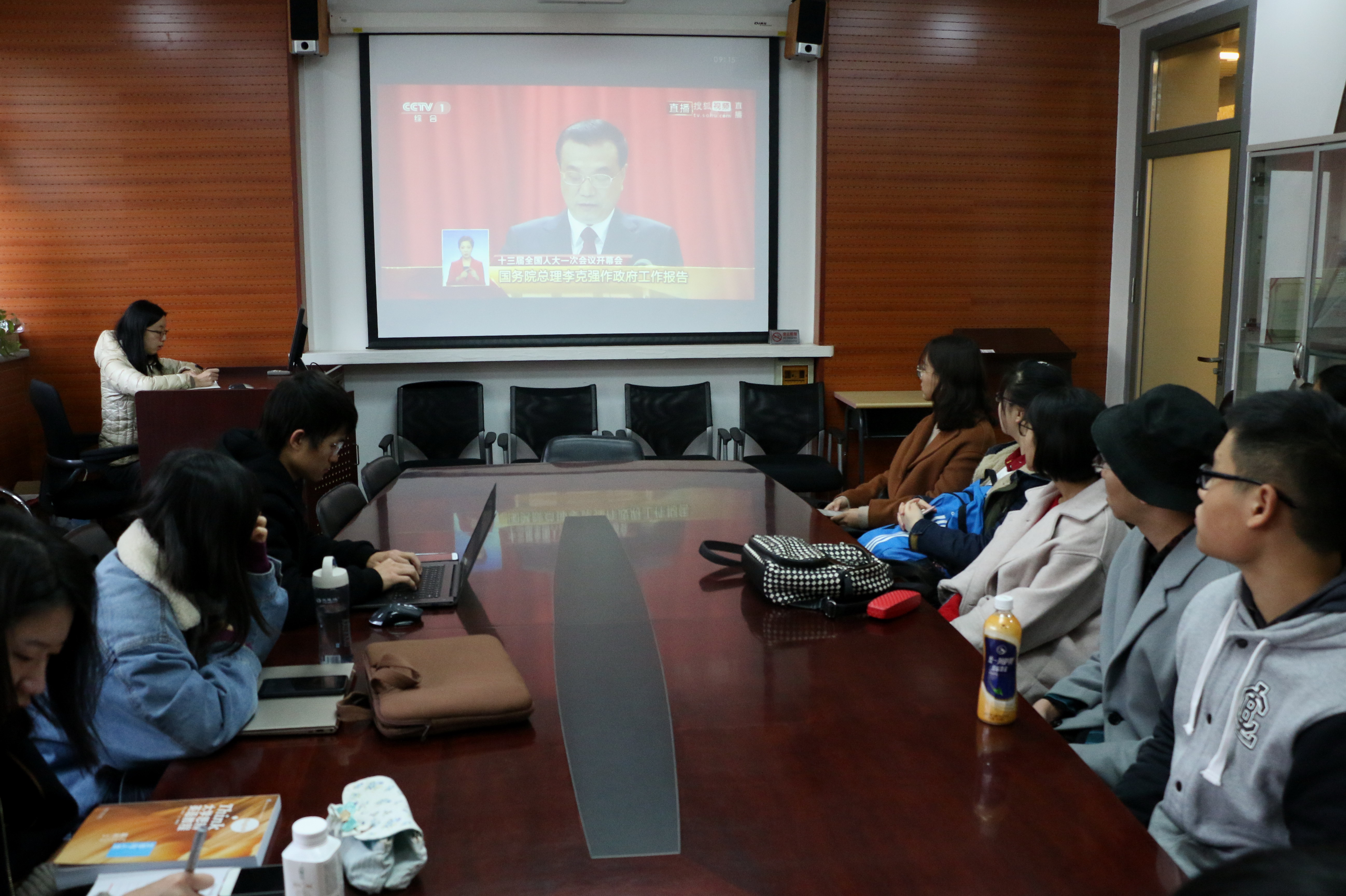 ——3月5日上午,第十三届全国人大一次会议在北京开幕。国务院总理李克强代表国务院,向大会报告过去五年政府工作李克强总理作政府工作报告,对今年工作提出建议。Beat365唯一官方网站组织师生在115会议室现场收看,党总支书记路兴、辅导员及部分学生团支部书记、学生骨干、入党积极分子等参会学习。