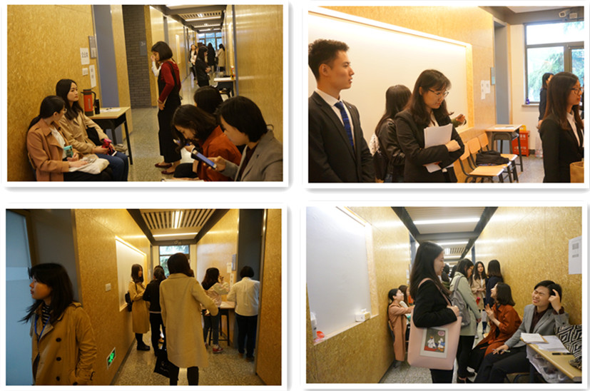 ——活动邀请到了来自中国国际科技交流中心、外文局中国网、科技部、北京亦庄实验中学、中国人民大学附属中学、人大附中深圳学校、中国日报社、人民网、新华社、新东方、柯瑞生物制药公司、中国翻译总公司、中信银行股份有限公司总行营业部、毕马威会计事务所、普华永道、上海证券交易所的优秀校友。我院党总支书记路兴、研究生15级辅导员于承杰老师及16级辅导员沈越老师也参加活动。2015级本科生、2016级学硕研究生和2017级MTI专业研究生近百名学生参与模拟面试。面试分为七个小组,采取单独面试和无领导小组讨论两种形式。通过英文自我介绍、面试官提问、求职者提问等环节,考察学生的仪表仪态、语言表达、逻辑思维、专业能力等综合素质,面试嘉宾针对毕业生的简历情况和面试表现现场作出点评。