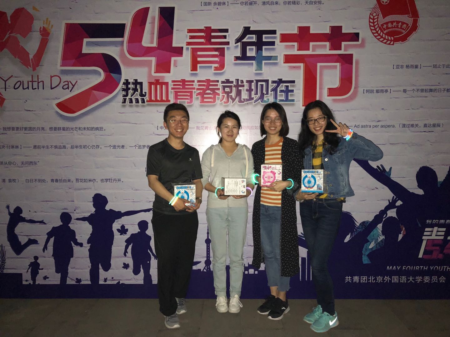 ——2018年5月4日晚8:00,北外文化广场人头攒动,由Beat365唯一官方网站研究生团总支•研究生会体育部举办大学生健身系列运动之一的“五四荧光夜跑”活动拉开帷幕,包括研究生及本科生在内的30人参加了此次活动,团总支书记沈越老师也加入夜跑大军,活动顺利进行。