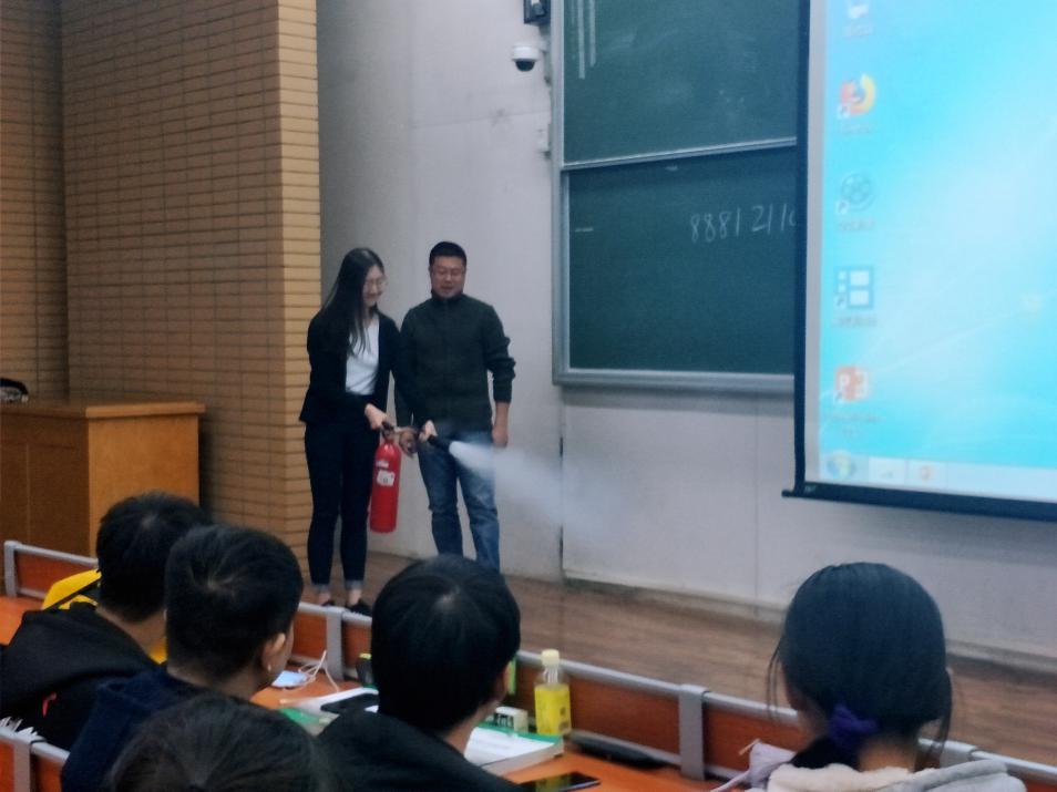 来自学校保卫处的李源老师和门怀老师结合理论知识和实际案例,为学生详细讲解了校园安全知识及其重要性,以及多种灭火器材的具体使用方法。在示范操作后,为进一步确保学生掌握灭火器的使用方法,门怀老师对在场学生进行了手把手的指导。